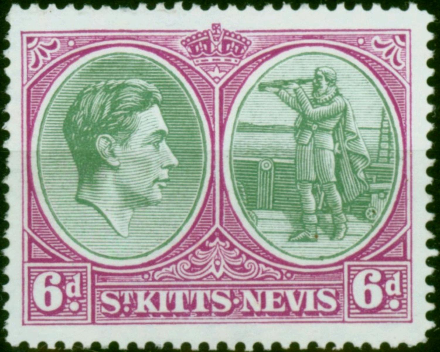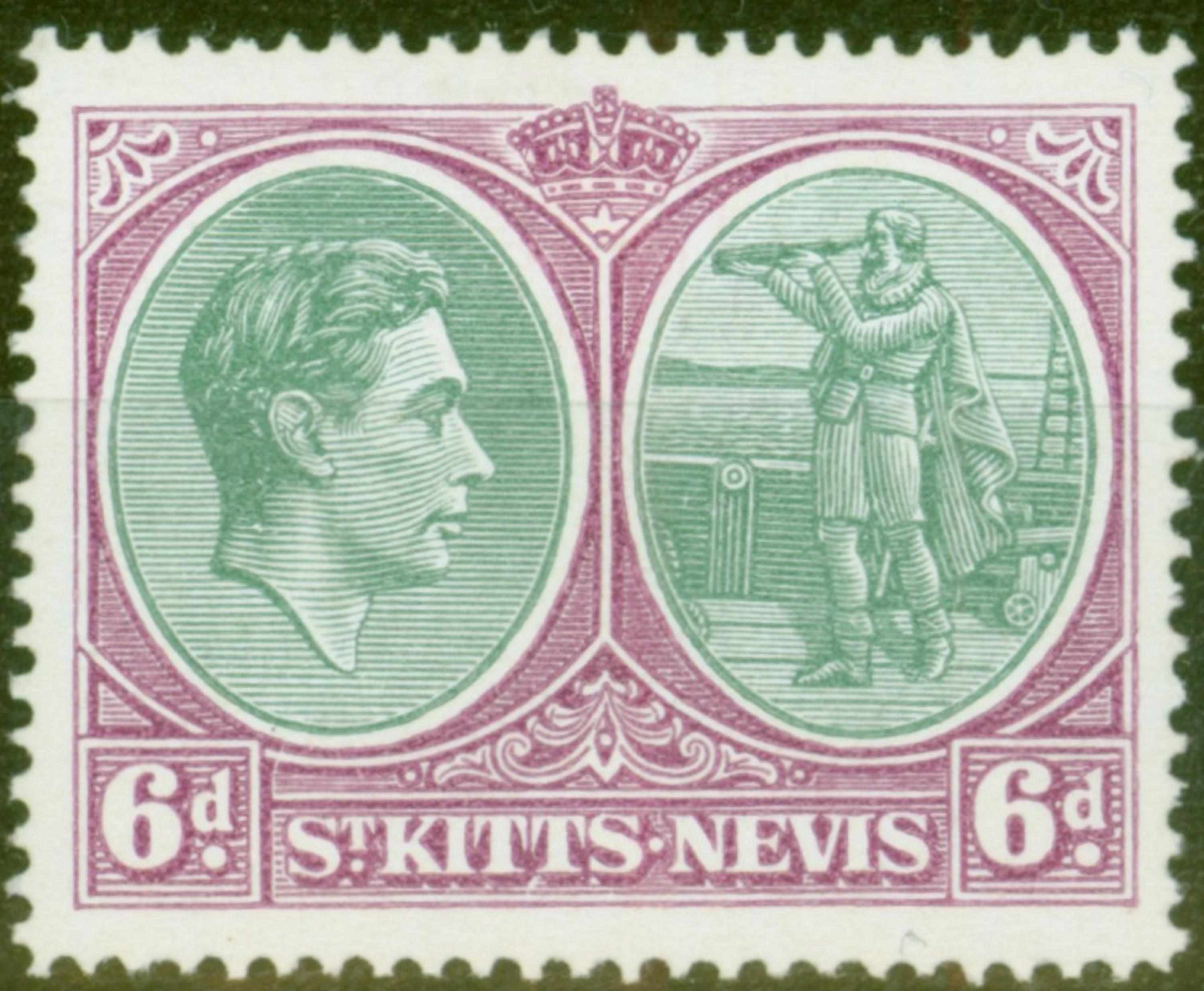St Kitts & Nevis 1948 6d Green & Purple SG74d V.F VLMM