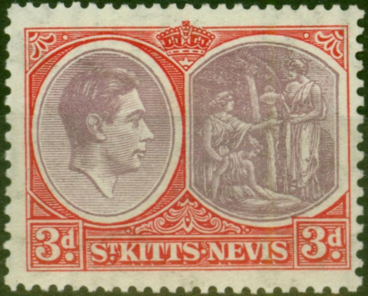 St Kitts Nevis 1938 3d Dull Reddish Purple & Scarlet SG73 Fine MM
