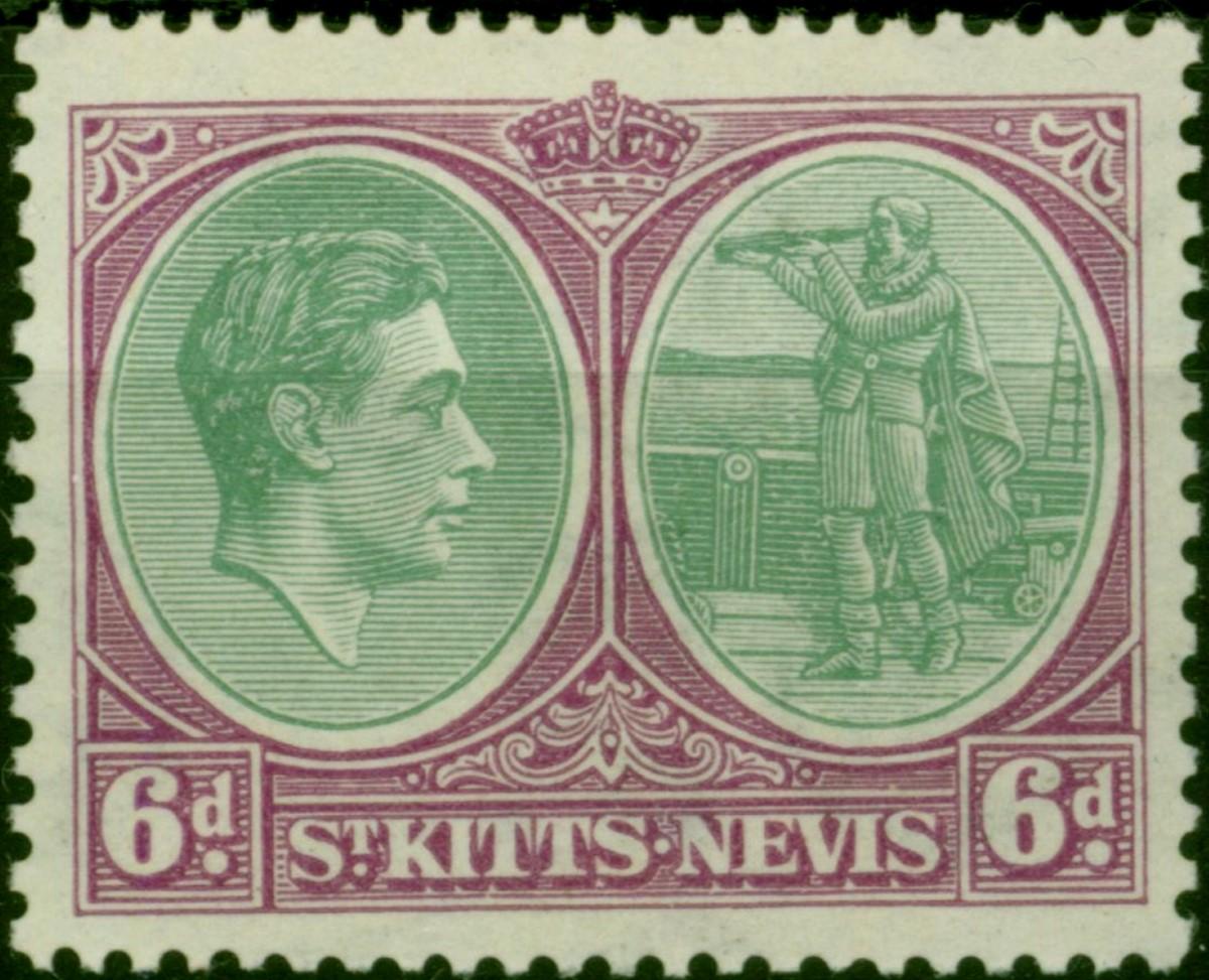 St Kitts Nevis 1938 6d Green & Bright Purple SG74 Fine LMM (2)