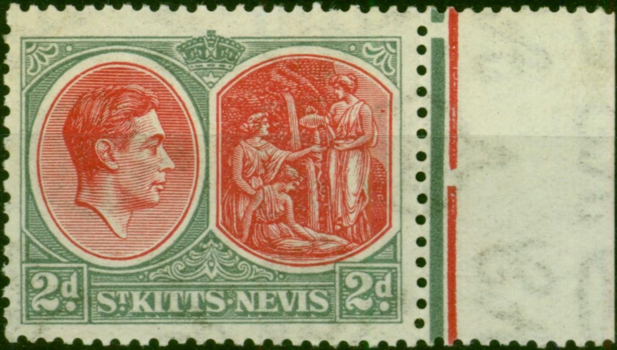 St Kitts Nevis 1941 2d Carmine & Deep Grey SG71a Chalk Fine LMM