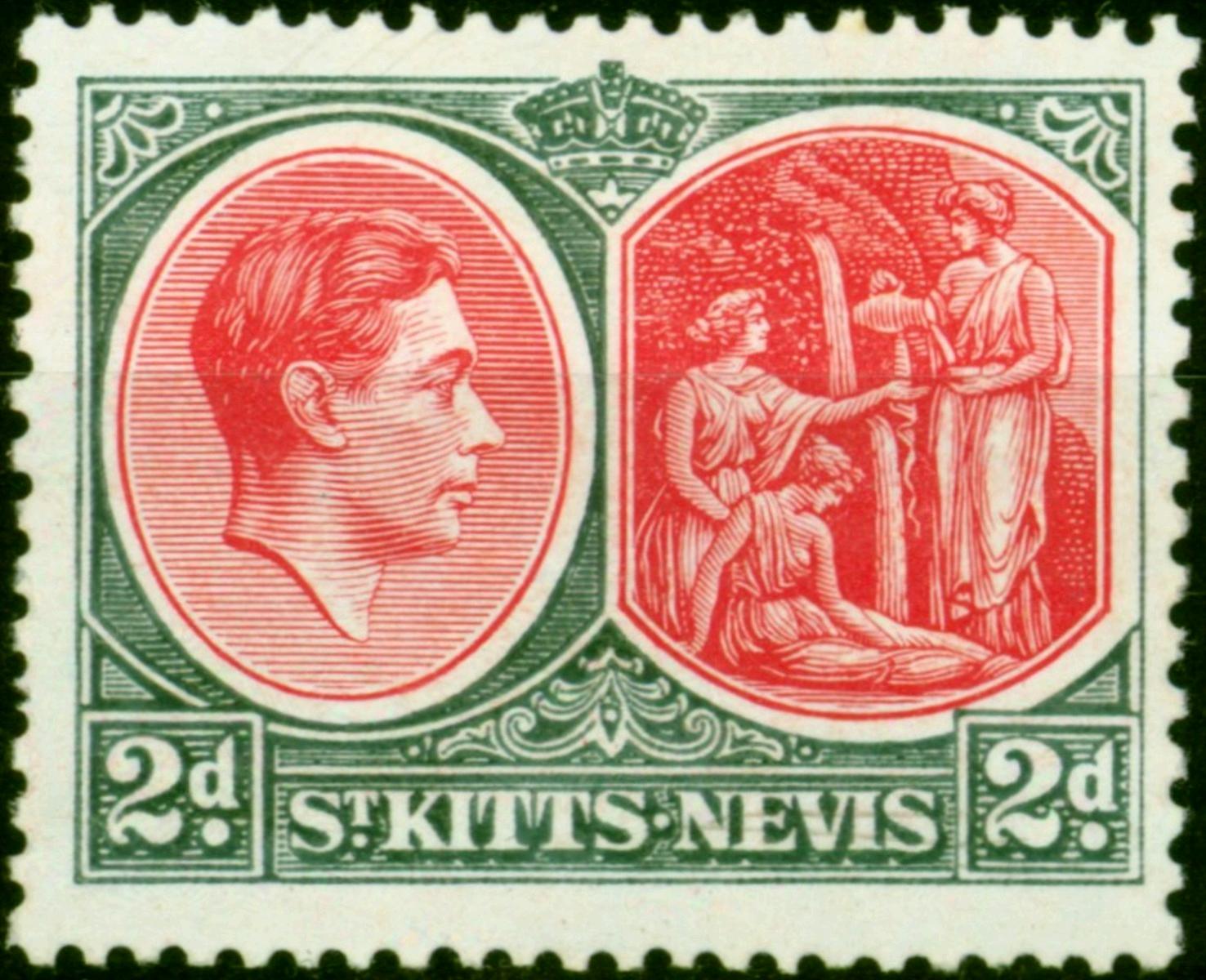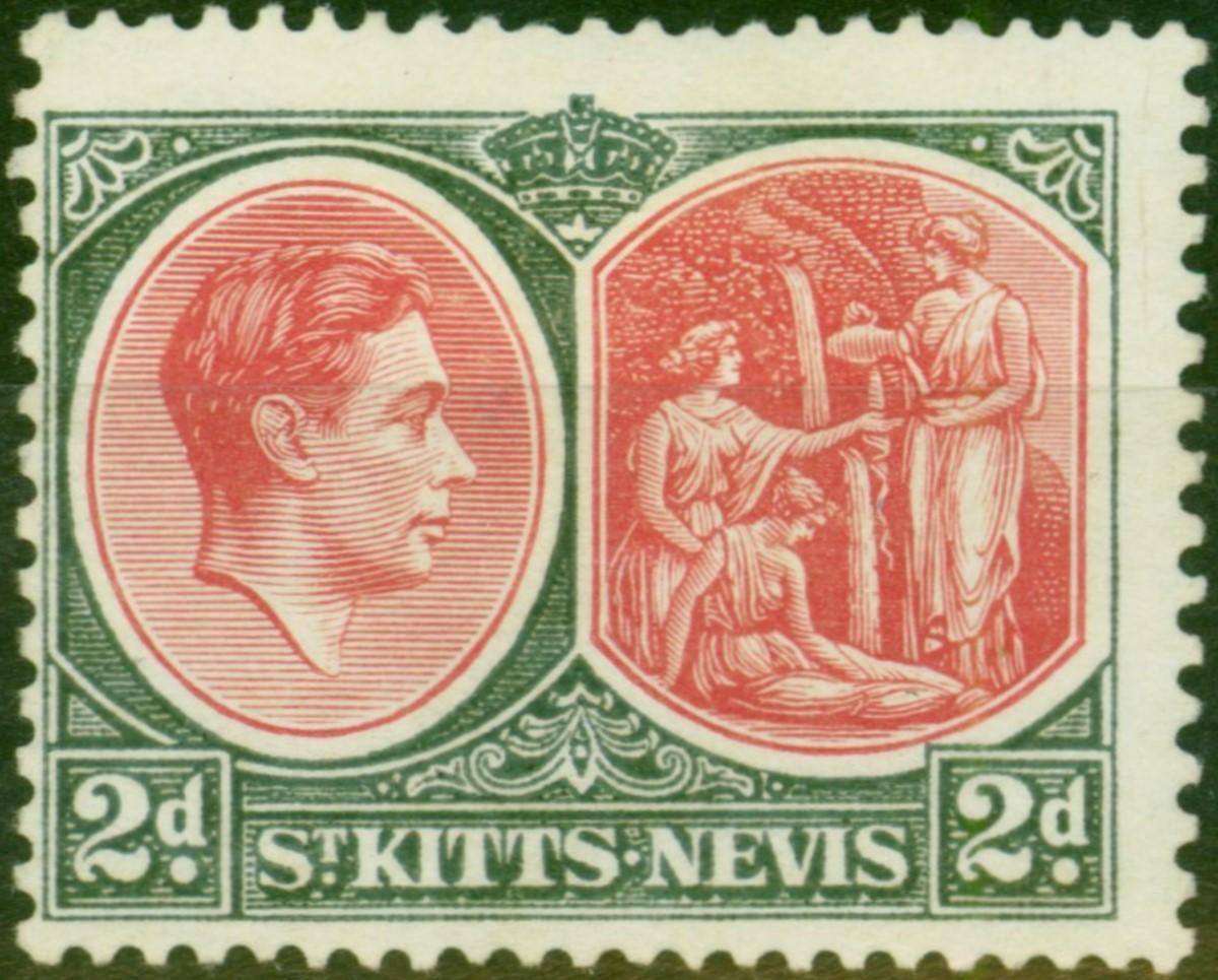 St Kitts & Nevis 1941 2d Carmine & Deep Grey SG71a Chalk Fine MM