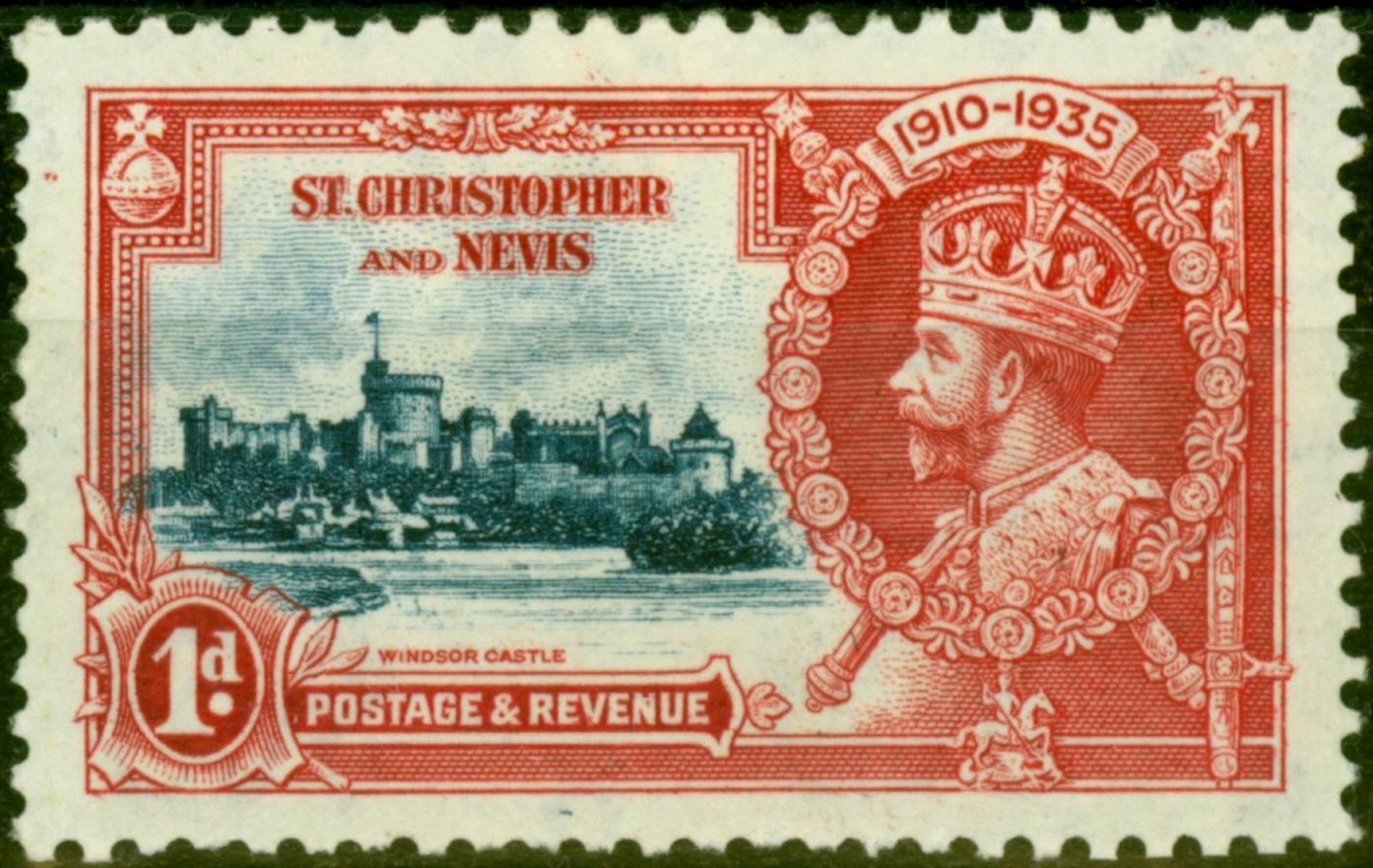 St Christopher & Nevis 1935 1d Dp Blue & Scarlet SG61k Kite & Vertical Log Fine MM