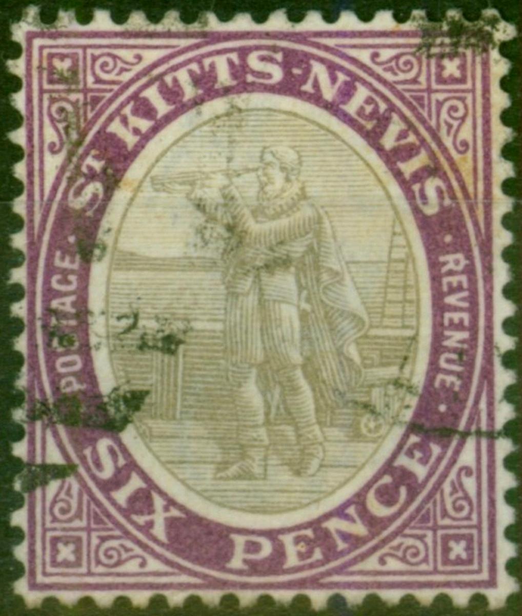 St Kitts Nevis 1903 6d Grey-Black & Bright Purple SG6 Fine Used