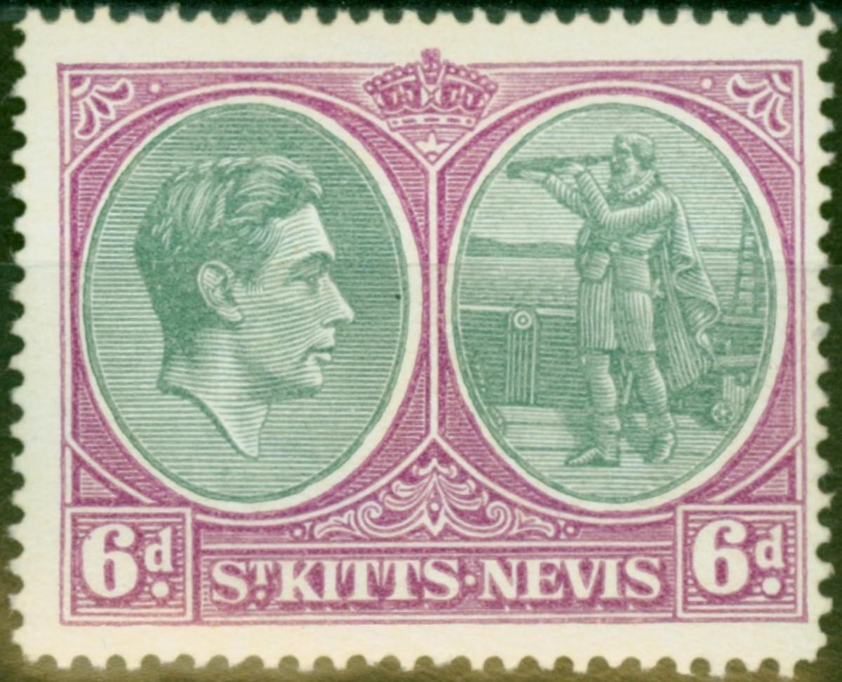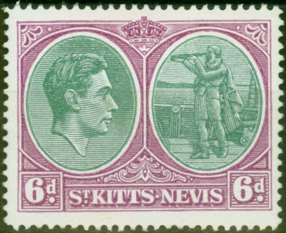 St Kitts & Nevis 1944 6d Green & Purple SG74c Fine & Fresh MM