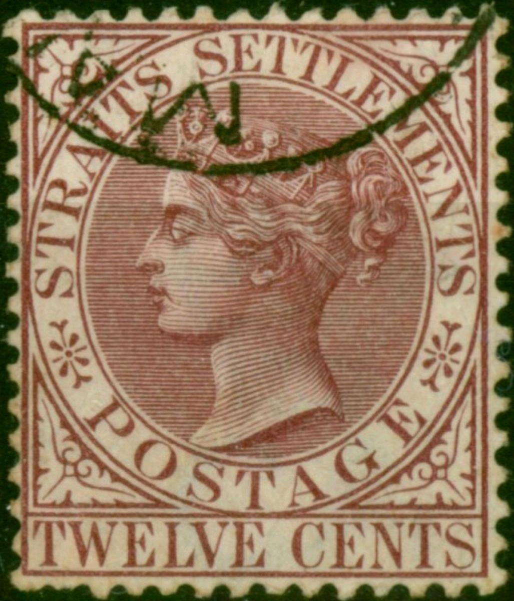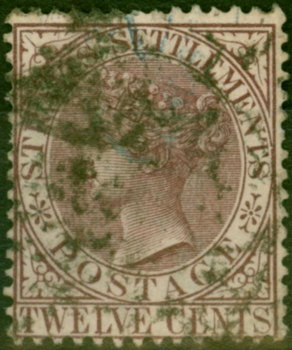 Straits Settlements 1883 12c PurpleBrown SG67 Good Used (2)