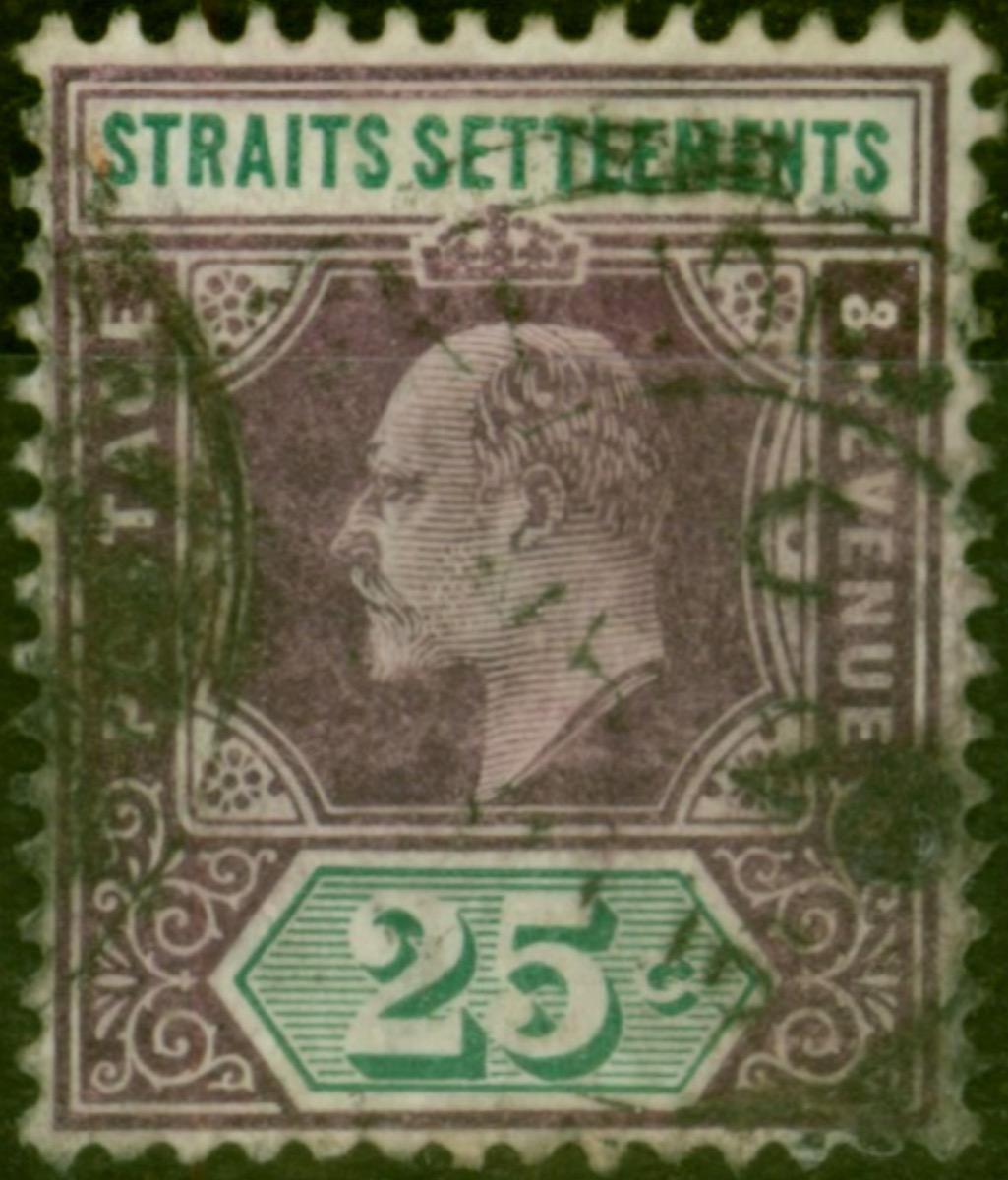 Straits Settlements 1905 25c Dull Purple & Green SG133b Chalk Good Used