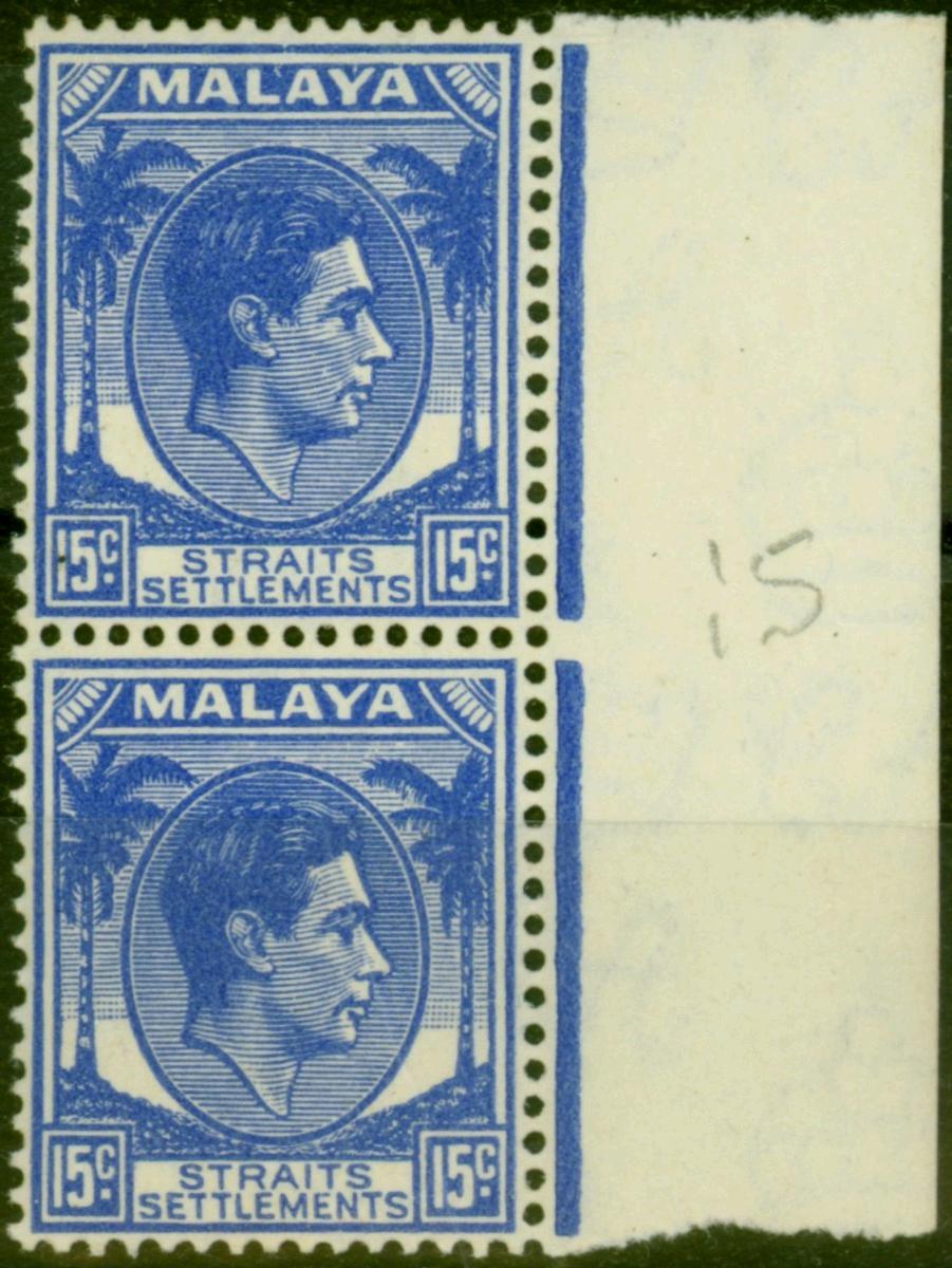 Straits Settlements 1941 15c Ultramarine SG298 Fine VLMM Pair