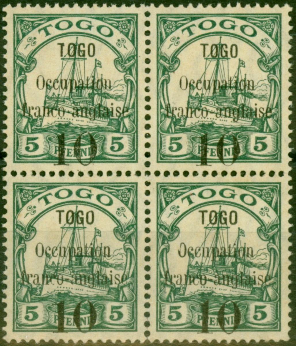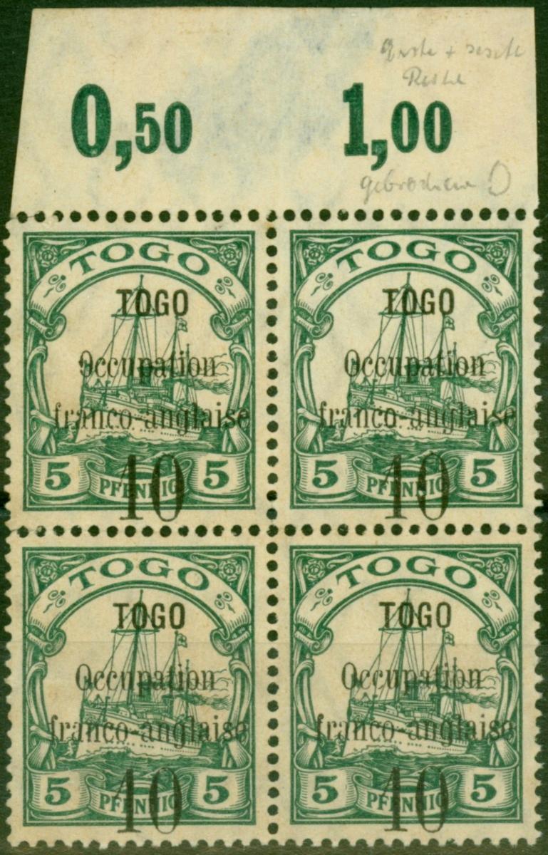 Togo franco-anglaise 1914 10 on 5pf Green SG2a Type II Fine MNH Block of 4 (2)