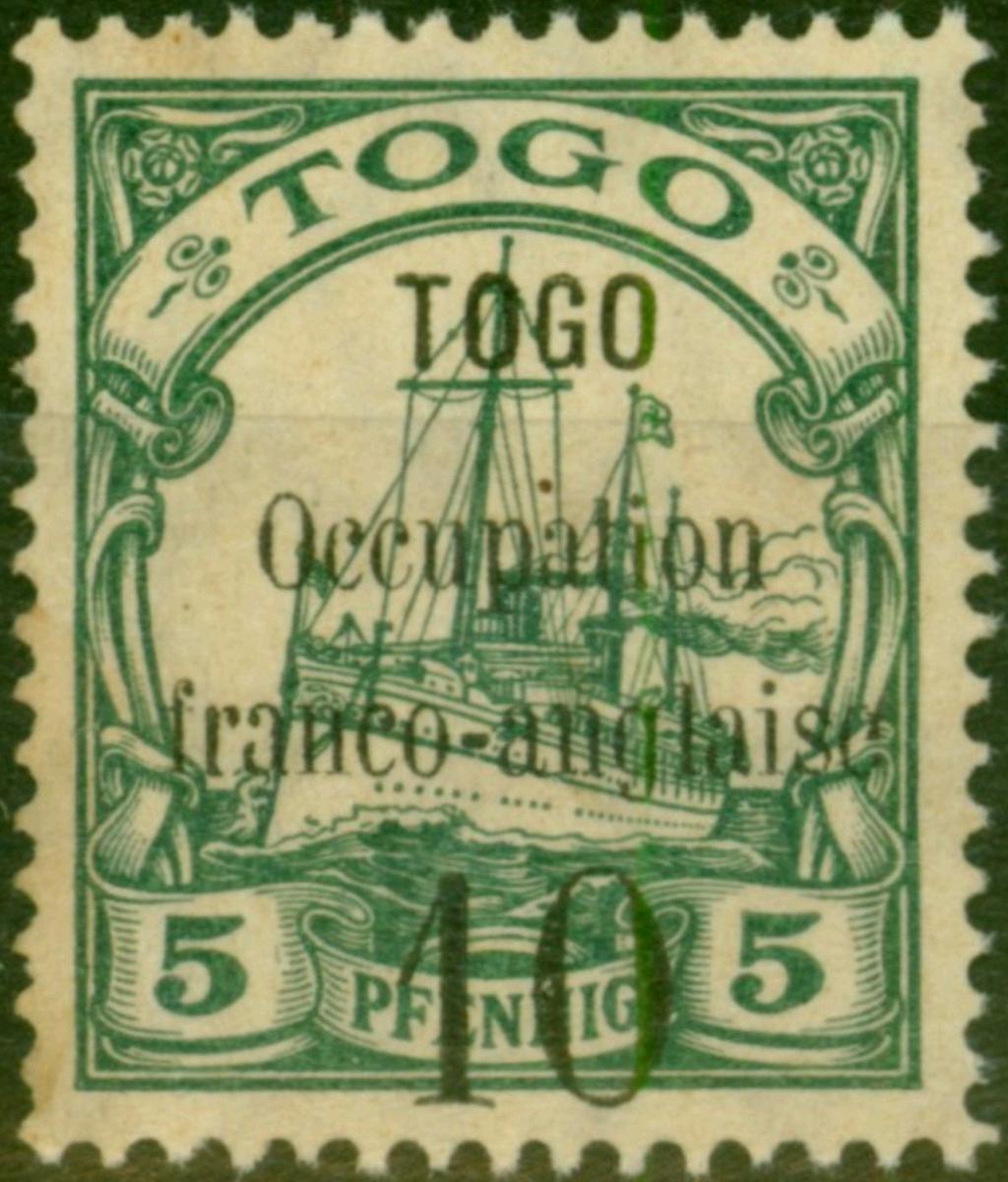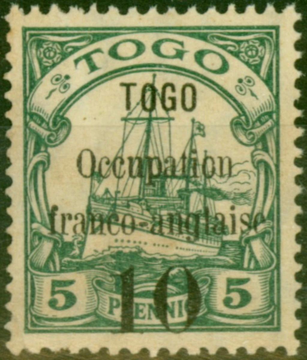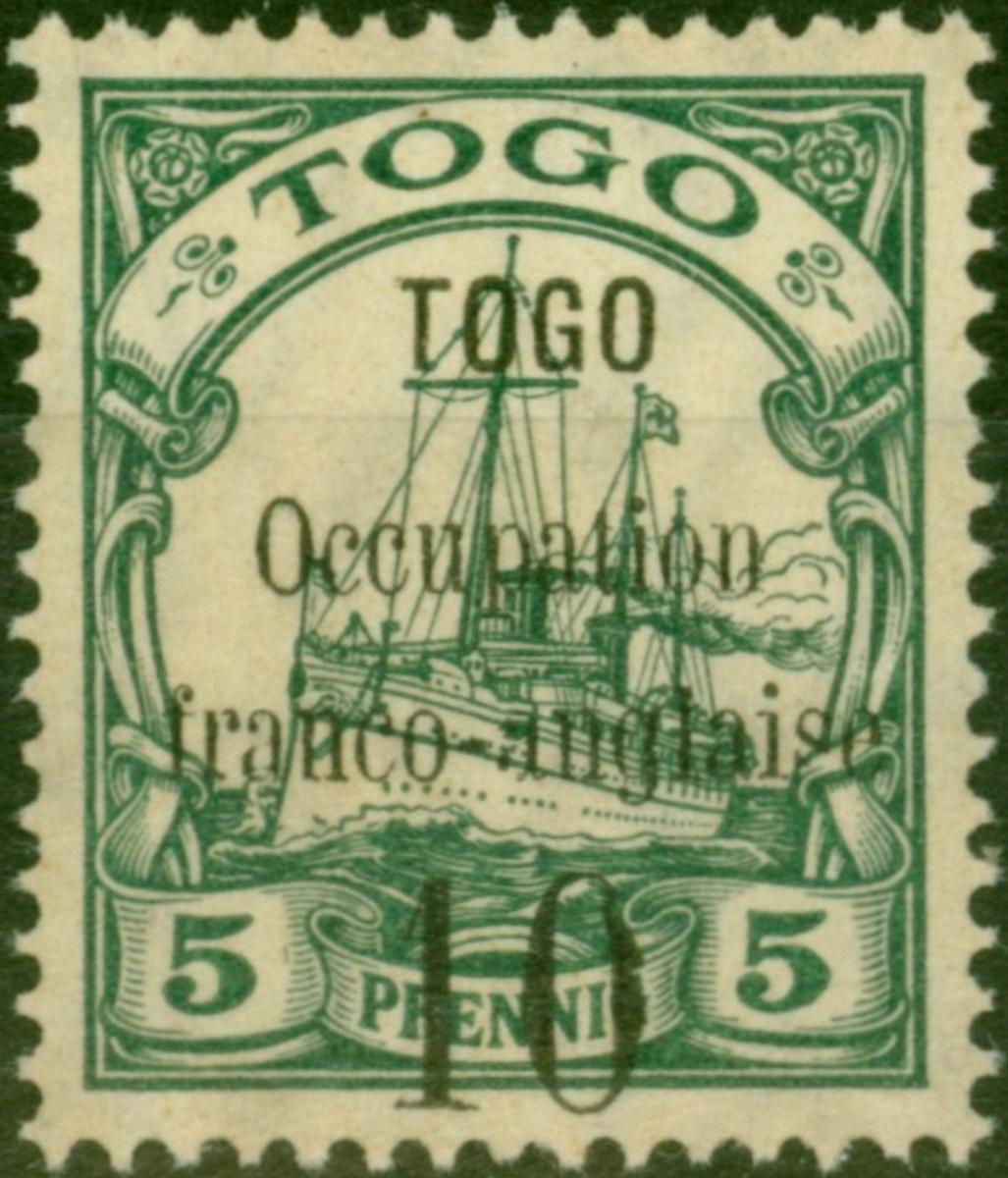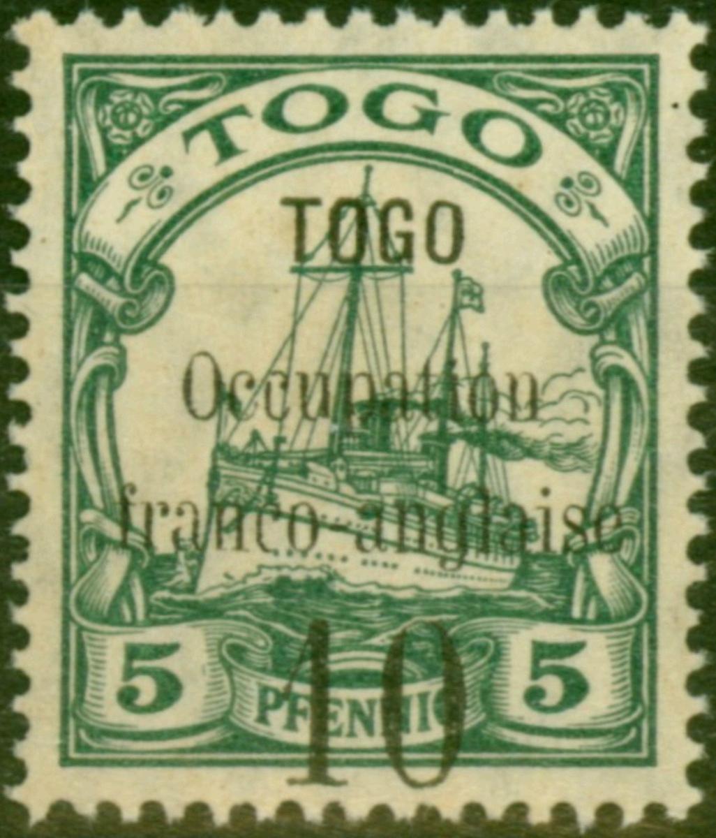 Togo franco-anglaise 1914 10 on 5pf Green SG2a Type II Good MNH (2)