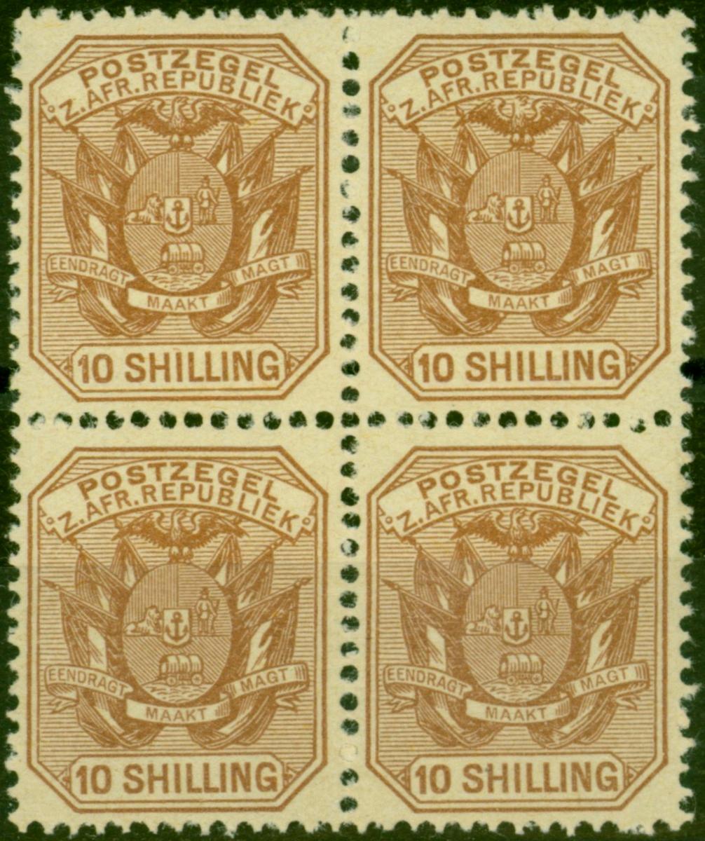 Transvaal 1896 10s Pale Chestnut SG212a Fine MNH Block of 4 (2)