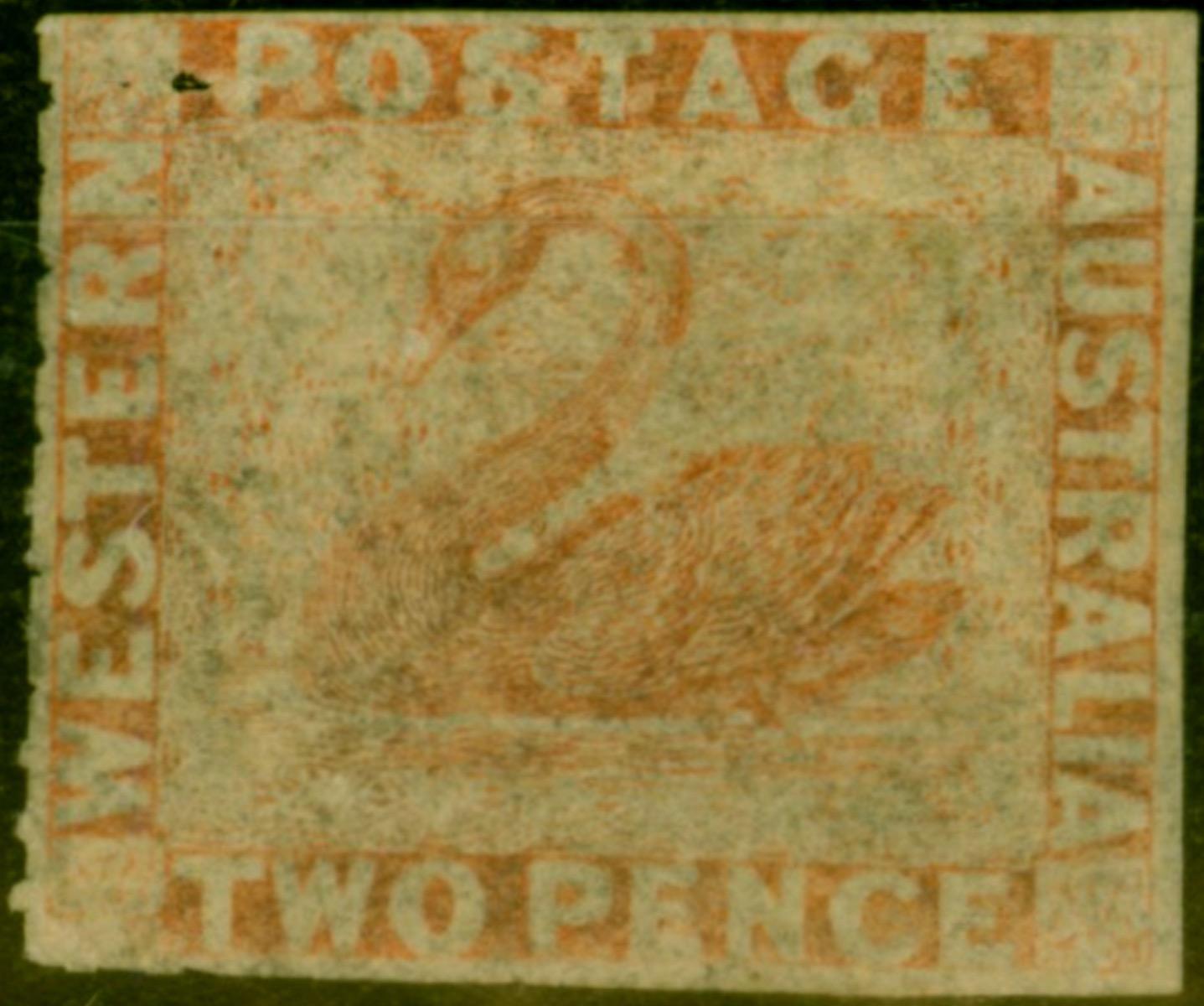 Western Australia 1860 2d OrangeVermilion SG30 Rouletted Fine MM
