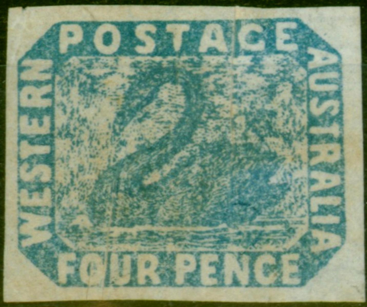 W Australia 1854 4d Pale Blue SG3d 'T of Postage Shaved off to a Point ' Fine Unused Rare