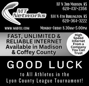 month. For reservations or cancellations in Olpe call 620-475-3384 between 9:30 a.m. - 12:00 p.m. North Lyon County Senior meals are available in Allen for grab and go or home delivery. Meals are available Monday through Friday and must be ordered by 11 a.m. the previous day by calling 620-528-3414. If you are 60 or older, a $4 donation is appreciated, meal is $7 for those under 60. Call for more information. Madison Senior Center, 224 W. Main, is serving Senior Meals Monday- Friday beginning at 11:30 a.m. Call 620-4376402 for reservations. Delivery is available. This is for Seniors 60 or older.
