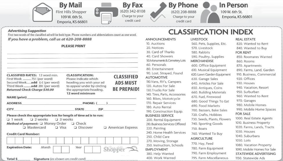 • Hermes Footcare every Thursday. Call 316-260-4110 for an appointment.