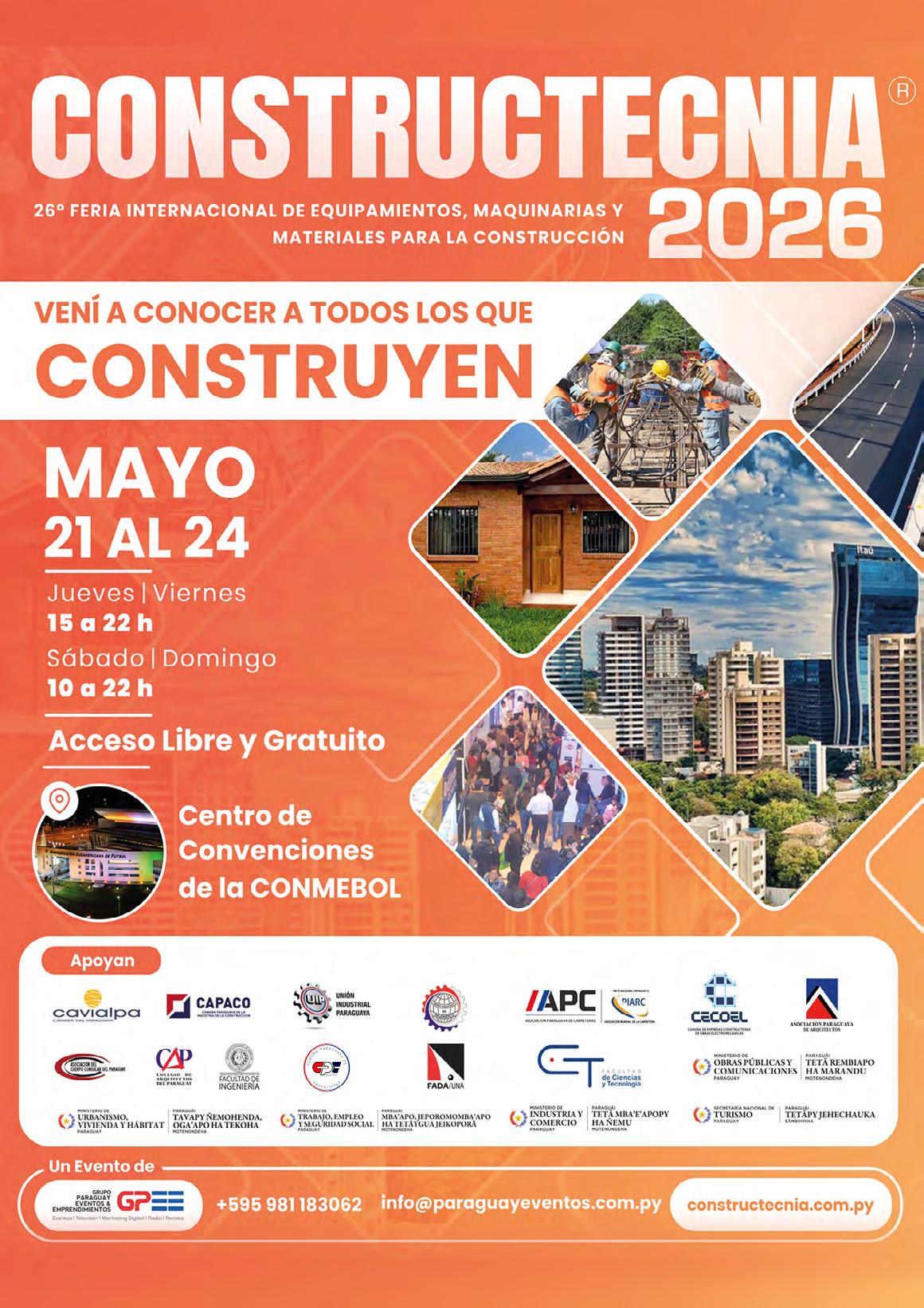 Como cada año, la empresa participará de la nueva edición de la gran feria de la construcción, Constructecnia, a realizarse en mayo en el Centro de Convenciones de la CONMEBOL.