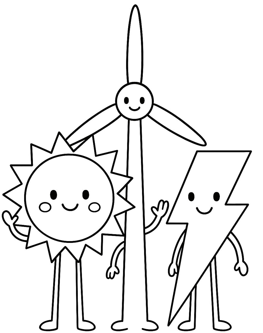 Electricity can come from all sorts of friendly places. Pick your colors, draw away and bring this scene to life!