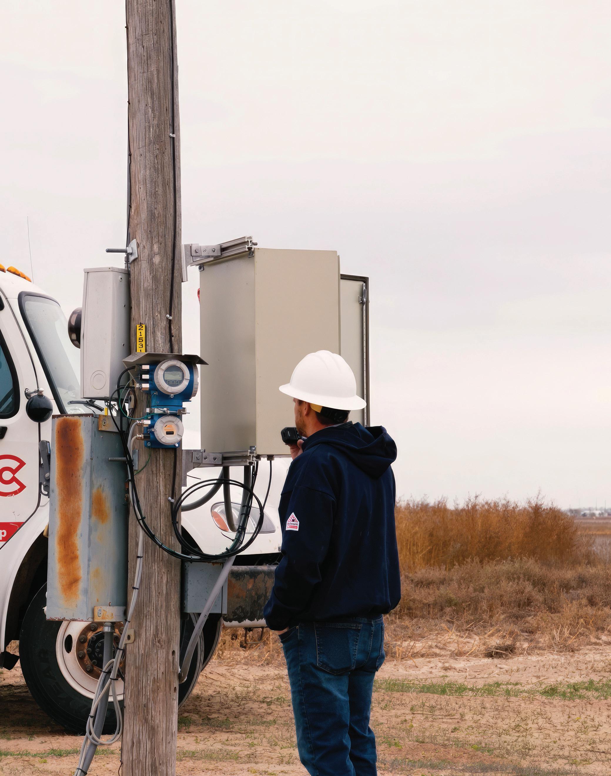 An RCEC lineworker checks readings on a water meter. PHOTO COURTESY OF RCEC