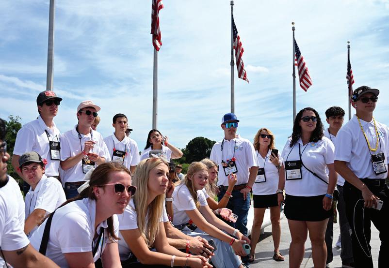 toured monuments, memorials, the Smithsonian Institution’s museums and George Washington’s Mount Vernon Estate. Delegates Angelica Barbaro, Haylie Bidegain, Kohan Evans and Zephaniah Guerro participated in a formal ceremony at Arlington National Cemetery by dedicating a wreath they laid at the Tomb of the Unknown Soldier, in front of more than 40 New Mexico Honor Flight heroes and their families. The group also attended the U.S. Marine Corps Sunset Parade one evening with delegates from other states.