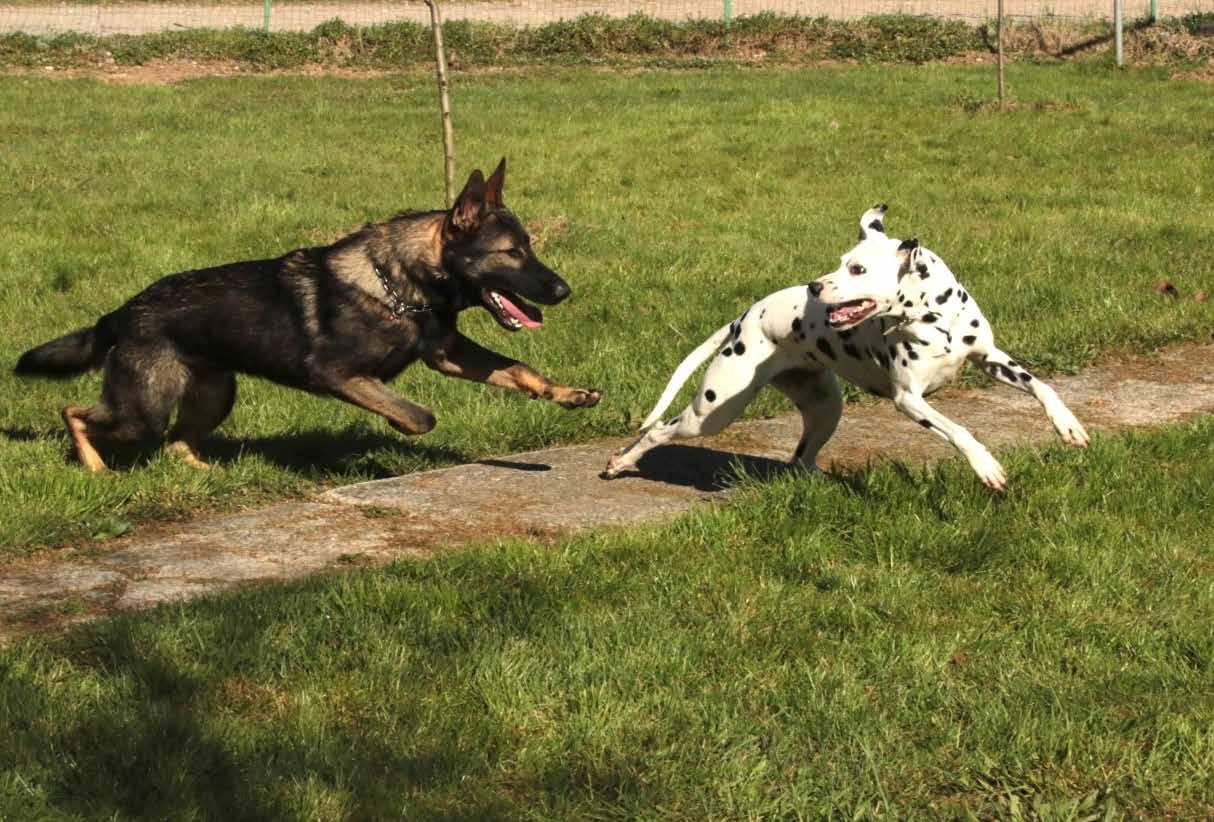 Cane da pastore tedesco e Dalmata. Foto Elena Corselli.