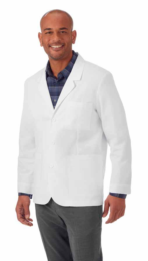 our mid-length lab coat, available in both men’s and women’s cuts.