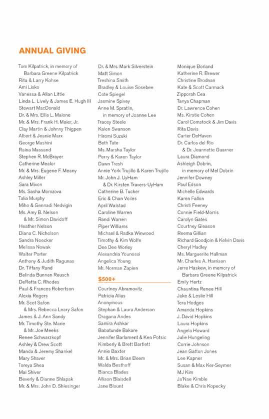 Georgie Grace Butler, Diane Caroll, Kelly Tonina Cooper, Kameron Davis, Taia Galloway, Mia Givens, Jennifer Inman, Madelin Jamison, Courtney Johnson, Calla Kallina, Matoi Kawamoto, Stephany Kuzminski, Janan Mirza, Alyssa Myers, Arneshuia Nelson, Abi Pace, Andrea Pell, Chantia Robinson, Lay’la Rogers, Roscoe Sales, Ericka Shannon, Anderson Souza, Caitlin Spencer, Jasmine Stevenson, Abi Tan-Gamino, Emanuel Tavares, Rebecca Trionfo