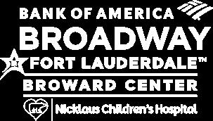 Programs at the Broward Center are sponsored in part by the State of Florida through the Division of Arts and Culture and the National Endowment for the Arts, and by: The Cornelia T. Bailey Foundation • Bank of America Charitable Foundation Caring Friends Foundation, Bank of America, N.A., Co-Trustee • Community Foundation of Broward Frederick A. DeLuca Foundation • Florida Support Autism Program License Plate • Florida Theatrical Association Charles F. and Esther M. Frye Foundation • Funding Arts Broward, Inc. • Genesis Inspiration Foundation Gore Family Memorial Foundation Trust • Mary Jane Harlow Charitable Trust • City of Hollywood • JM Family Enterprises Robert Wood Johnson Family Charities • Kapila Family Foundation • Josephine S. Leiser Foundation • Minto Foundation Ronald Plotkin Scholarship Fund • City of Pompano Beach • The Salah Foundation School Board of Broward County – SEAS Trust Fund • South Arts • The Taft Foundation • Jerry Taylor and Nancy Bryant The Zanoff Family Charitable Trust