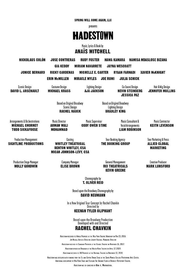 RYAAN FARHADI (Worker, u/s Hades). National tour: Come From Away (Kevin J/Ali), Lincoln Center’s My Fair Lady. Regional: The REV’s Jesus Christ Superstar, Hunchback. Love to his family, PMA and all the choir teachers who let him sing the bass part in middle school. @ryaanfarhadi.