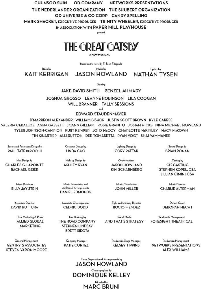 “This production is a big, bold, Broadway version of The Great Gatsby. It’s thrilling to see these indelible characters and iconic moments from the novel come to life on stage. This stage production, which honors the novel and its history while also speaking clearly to today’s audiences, is a terrific new iteration of this classic work.”