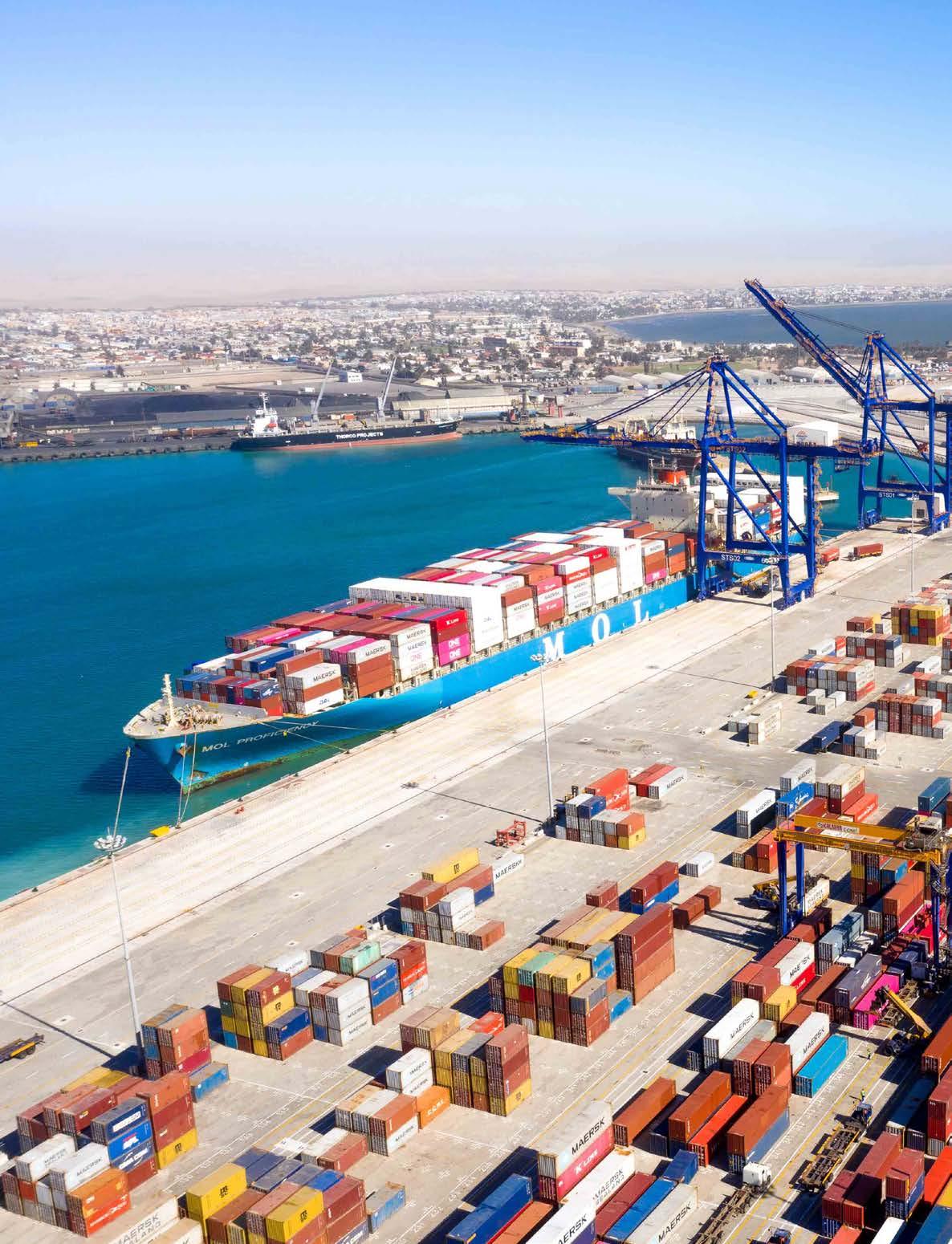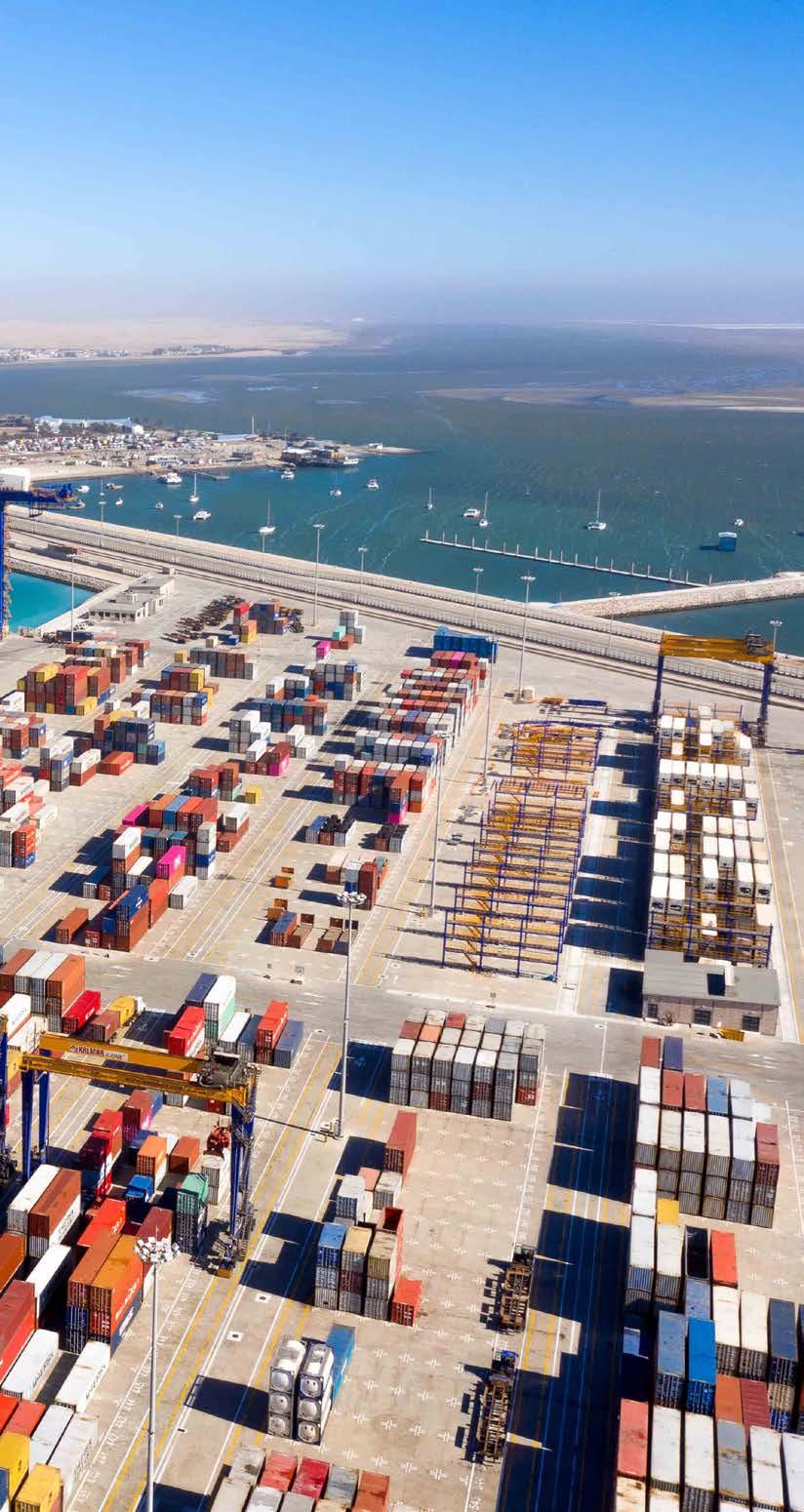roll-off terminal with a 190m quay and 12m of draft. To help deliver commodities from the port across the region, the Port of Tadjourah was developed in conjunction with other major infrastructure works, including the North Tadjourah-Bahlo corridor highway, providing an even more seamless network to move cargo from the port and onto end markets.