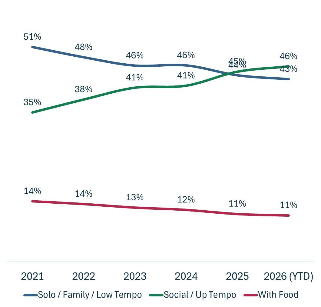 Consumptionoccasionshiftsarefavouringother categories,withWineheartlandoccasionsdeclining