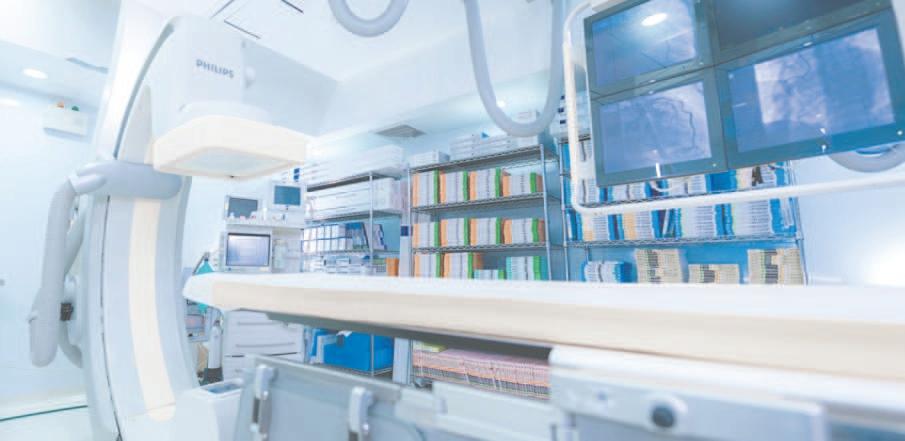 ● Angiografía o cateterismo cardíaco y periférico Después deun diagnóstico adecuado,se procede con el tratamiento y posible intervención. Para ello, posee dos salas de cateterismo, una sala de operaciones híbrida y una segunda sala de cirugíacardiovascular paralos procedimientosdetratamiento comocirugíacardiovascular,torácicay vascular(CoronaryArtery