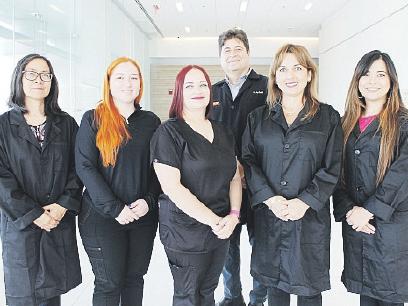 En el Centro Molecular, el equipo que dirige las operaciones científicas es mayoritariamente femenino, en la foto, en el orden acostumbrado, figuran la Dra. Pearl Akamine, de operaciones científicas, Noelia Elespe Candelario y Luisa M. Fernández García, ambas tecnólogas veterinarias, Vilmarie Mercado Nieves, de operaciones científicas, la Dra. Perla Cruz Tato, gerente de instrumentación científica, y el Dr. José A. Lasalde, director científico del Centro Molecular.