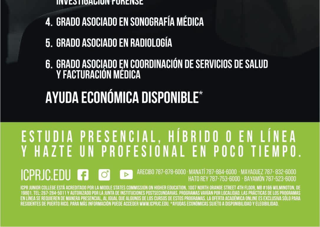 Para información, accede a www.icprjc.edu o visita sus redes sociales en Facebook e Instagram como: /icprjc.