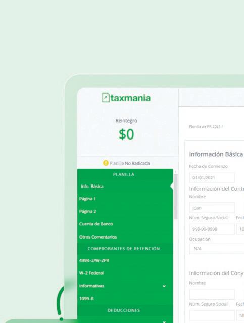 Accede a www.taxmania.com.Si no tienesuna cuenta,crea una,escogiendo “Crear Planilla”, y selecciona “Crédito Tributariopor Hijos”.Contesta laspreguntasqueteguiarán porelprocesode preparación de la planilla. Valida la planilla y confirma que todos los datos sean correctos. Para radicar, realiza el pago de $19.99 + IVU y listo.