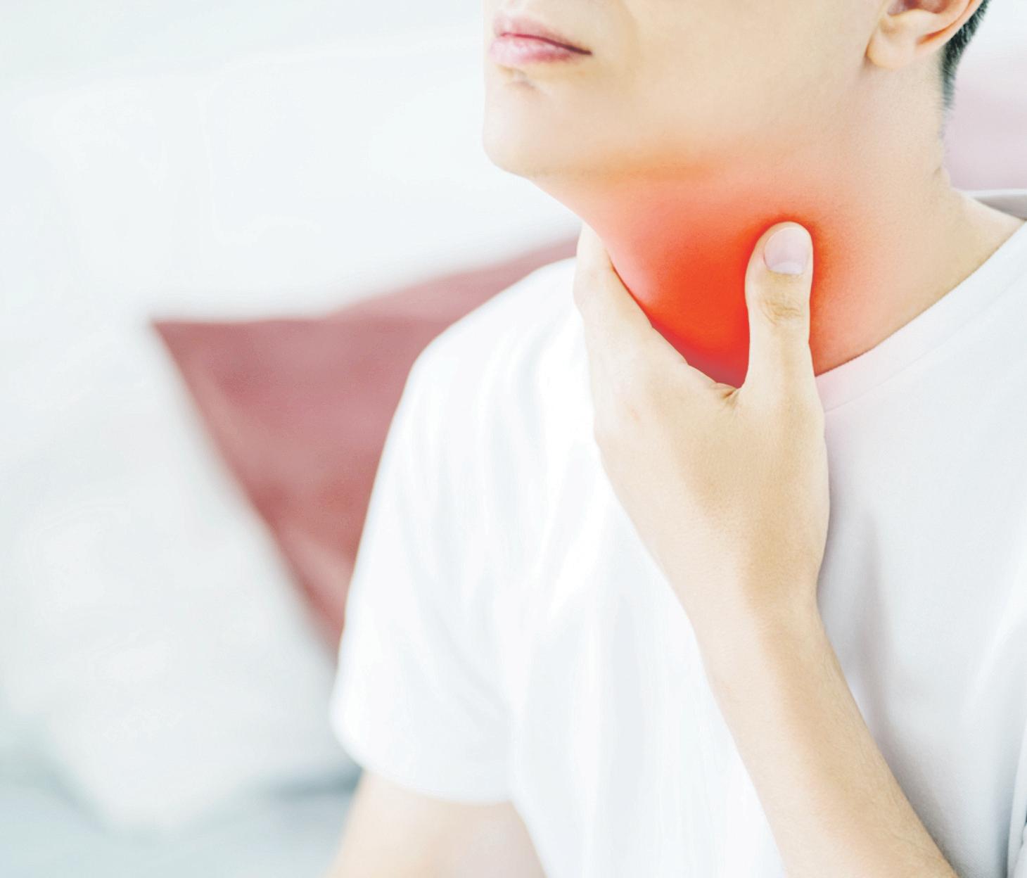 Lasintomatología quepresentael pacientecontiroiditis subaguda incluye dolor en el cuello ocasionado por la tiroides inflamada, dificultadpara tragar, ronquera, fatiga,debilidad yfiebre, entre otras señales.