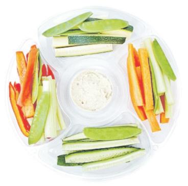Corta zanahorias, apio (celery), pimientos frescos y pepinos (pepinillos)enpalitos ysírveloscon hummus como dip. Es una opción nutritiva y rica en vitaminas