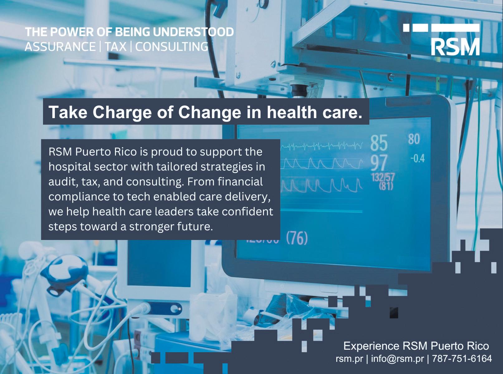 El panorama de la salud en Puerto Rico es complejo,ya que enfrenta presiones que incluyen desdela participaciónen laestructurade remuneración porservicios y la magnitud delas regulaciones hasta lagestión del ciclode ingresoshastalos avances tecnológicos. RSM Puerto Rico entiende estas complejidades,ya quesu prácticaestádedicadaalsector de la salud y proporciona estrategias personalizadas en auditoría,impuestos y consultoría para empoderar a loshospitalesy aloslíderes de la salud.