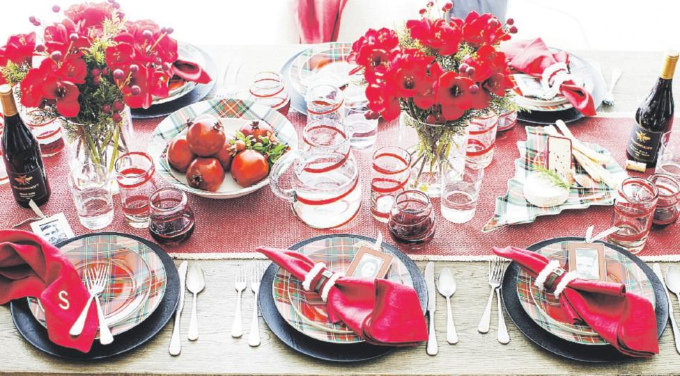 ● Haz notar los centros de mesa con elementos decorativos navideños en tonalidades de rojo.
