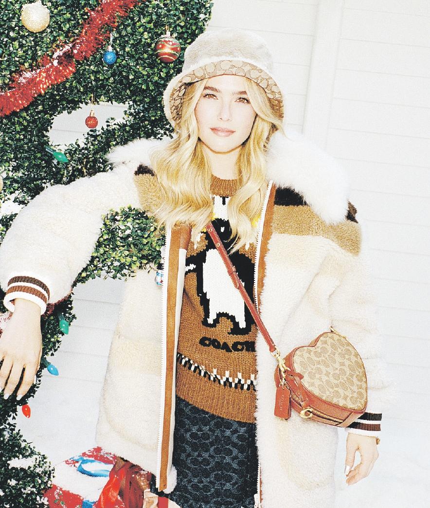 Bandolera en forma de corazón con emblema de la marca Coach, ideal para el día o la noche. La tienda está en el segundo nivel.