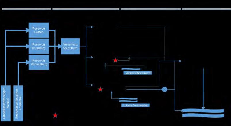 Energie Wasser Bern erfüllt den gesetzlichen Auftrag der Wasserversorgung für die Stadt Bern in Zusammenarbeit mit dem Wasserverbund Region Bern (WVRB) AG. Während die WVRB AG für die Fassung, den Transport und die Speicherung zuständig ist (Primärsystem), betreibt Energie Wasser Bern das Sekundärsystem (Feinverteilung), mit dem das Wasser an die Endkundinnen und Endkunden verteilt wird. Informationen zum Wasserversorgungsnetz der Region Bern können dem Jahresbericht WVRB entnommen werden.