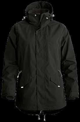 High-Tex-membran med andasförmåga. Fluorfri impregnering som ger en vattenoch smutsavvisande yta. Avtagbar huva samt ställbar vidd i ärmslut och nederkant. Kraftig tvåvägsdragkedja samt sidfickor, bröstficka och innerficka med dragkedja. Yttertyg 95% polyester, 5% elastan. Foder 100% polyester. Maskintvätt 40°.