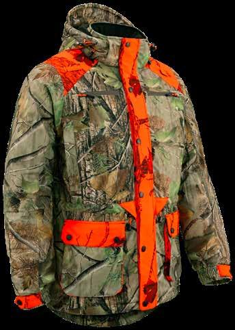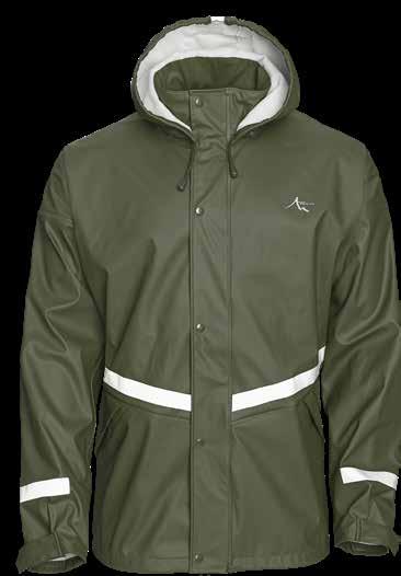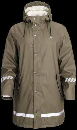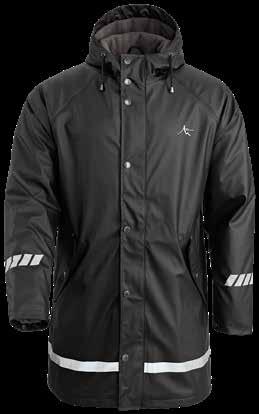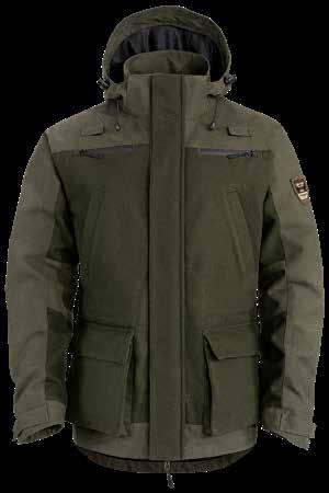 Fast, justerbar huva samt ställbar vidd i ärmslut och nederkant. Kraftig tvåvägsdragkedja samt sidfickor och bröstficka med dragkedjor.