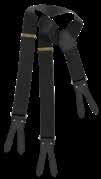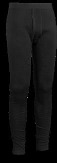 Byxan har jeansknapp och YKK®-dragkedja. Två sidofickor, två benfickor med bälg på sidorna samt en bakficka - alla fickor har dragkedjor. Framtill finns en D-ring att fästa nycklar eller andra grejer i. Byxan är förhöjd baktill, har resår i midjan och kraftiga hällor för skärp. Byxbenen är reglerbara nertill med resårband och knapp. Färg: Svart.