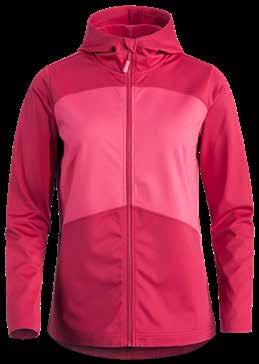 Bekväm och smidig jacka i stretchig och skön powerfleece. Slät utsida och mjuk, ruggad insida. Funktionell med bra andasförmåga och fukttransport. Fast luva. Två sidfickor samt bröstficka med dragkedjor. Dammodellen är något figursydd. 96% polyester, 4% elastan. Maskintvätt 40°.