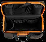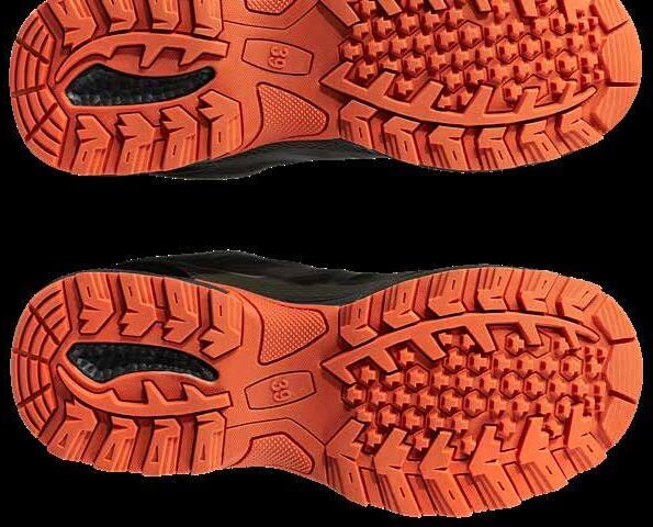 Maskintvätt 40°. Färg: Svart med orange detaljer.