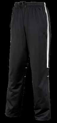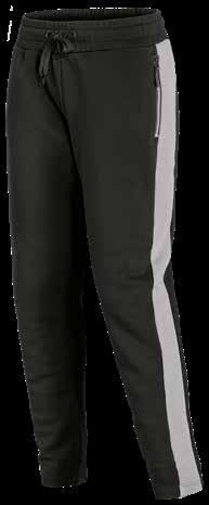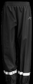 Sidfickor, en bakficka samt två benfickor. Benfickorna har dragkedja. Ventilationsöppningar med mesh på baksidan av benen. Benslutet har dragkedja och en liten kil som ökar vidden. Midja med ställbar resår som justeras med kardborre. Något förhöjd i ryggen. Rejäla hällor för bälte, dubbla knappar och gylf. Färg: Svart.