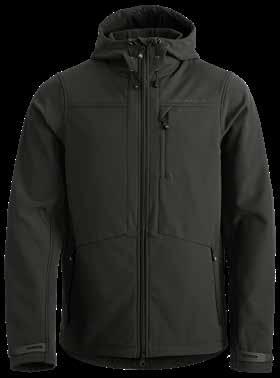 Otroligt smidig och tyst jacka i stretchig softshell. Vindtät och vattenavvisande High-Tex-membran som andas 5000 g/m2/24h. Ventilationsdragkedjor med mesh under armarna och 4-vägsstretchen ger ökad frihet, flexibilitet och bästa möjliga passform. Fluorfri impregnering som ger en vatten- och smutsavvisande yta. Ställbar, fast huva, bröstficka och två sidfickor. Ställbara ärmslut med insydd mudd och tumgrepp. Tvåvägsdragkedja och ställbar nederkant. 100% polyester. Maskintvätt 40°.