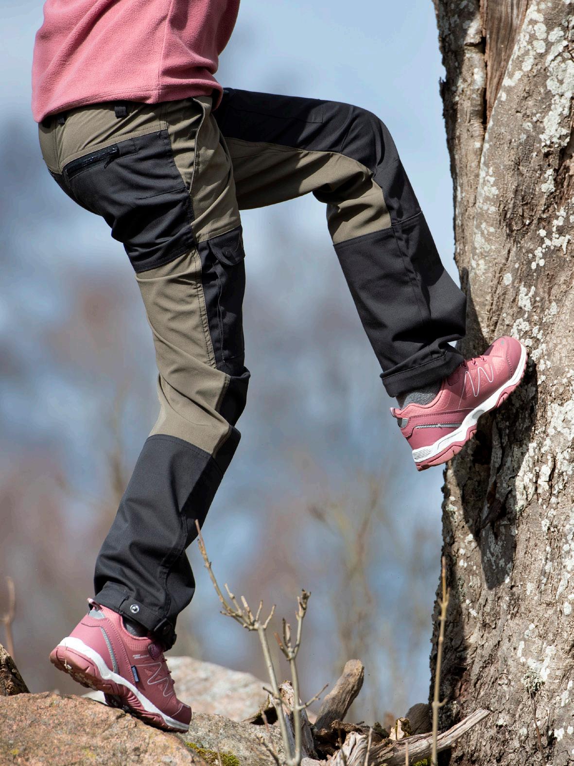 Ögla att fästa byxkroken i. Den uttagbara innersulan är ergonomisk och ger skön dämpning. Yttersulans djupa mönster ger ett bra grepp på olika sorters underlag. Stötdämpande mellansula i EVA.