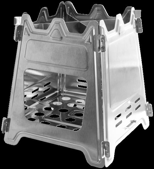 Ihopfällbart vedkök i rostfritt stål. Tar liten plats i packningen. 99 kr