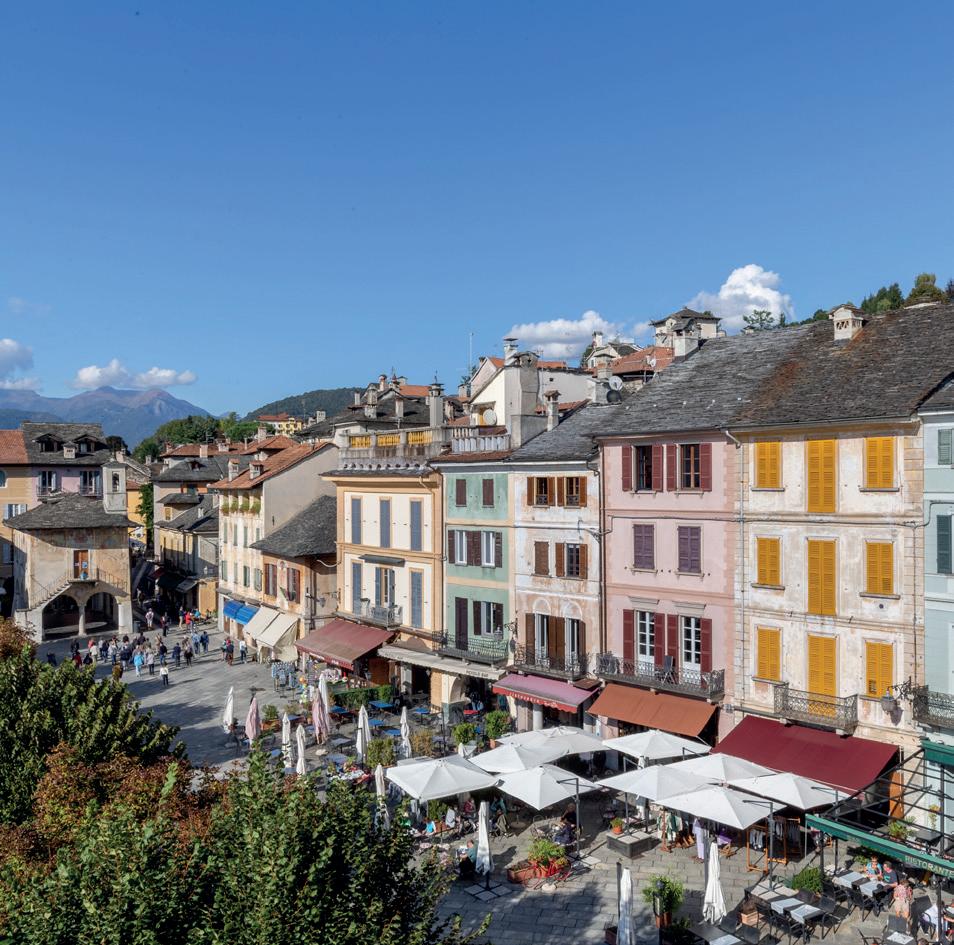 Among the most characteristic towns, in addition to Ameno, Armeno and Miasino with its enchanting Villa Nigra, there is undoubtedly Orta San Giulio, with its Sacro Monte dominating the lake from on high, its historic centre full of cobblestone alleys, its central square from which boats depart for the Island of San Giulio, and the panoramic walk along the lake shore among the sumptuous villas. On the opposite shore we find Pella: a delightful little town that can also be reached by a relaxing walk that, starting from the Lido di Gozzano and skirting the western shore, first encounters San Maurizio and the small beach of Lagna and then leads to its destination. Not far away nearby, there is the Sanctuary of the Madonna del Sasso at Boleto, situated on a rocky granite spur overlooking the Lake. From here the view sweeps over a breath taking panorama of slopes and green peaks reflecting in the water. Finishing the tour of Lake Orta, we first find ourselves in Oira, which is certainly worth a visit, and then in Omegna, one of the largest towns here, framed by the mountains with the Strona stream curiously flowing in the opposite direction.